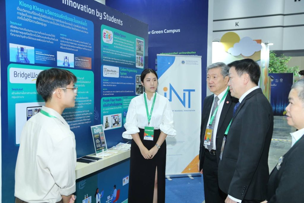 เมื่อวันที่ 26 กันยายน 2568 สถาบันบริหารจัดการเทคโนโลยีและนวัตกรรม (INT) นำผลงานวิจัยและนวัตกรรม เข้าร่วมจัดแสดงในงาน Sustainability Expo 2025 (SX 2025) ภายใต้แนวคิด “พอเพียง ยั่งยืน เพื่อโลก” (Sufficiency for Sustainability) ซึ่งจัดขึ้นระหว่างวันที่ 26 กันยายน – 5 ตุลาคม 2568 โดยนำเสนอผลงานนวัตกรรมจากสตาร์ทอัพและทีมนักศึกษาภายใต้โครงการ Mahidol SDGs Impact Challenge ที่สะท้อนความมุ่งมั่นในการพัฒนาอย่างยั่งยืน ไม่ว่าจะเป็น