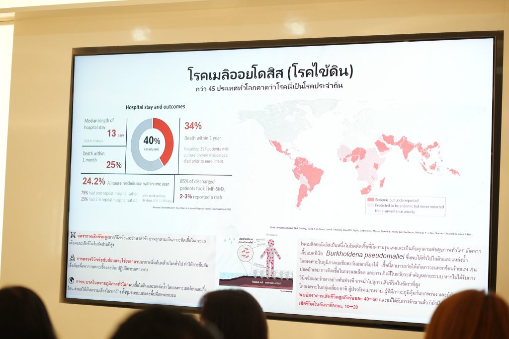 ศ.ดร.นริศรา จันทราทิตย์ ภาควิชาจุลชีววิทยาและอิมมิวโนโลยี คณะเวชศาสตร์เขตร้อน มหาวิทยาลัยมหิดล ชี้ให้เห็นถึงความสำคัญของระบบ Decentralized Diagnostics หรือการกระจายอำนาจการตรวจวินิจฉัยสู่มือประชาชน ซึ่งเป็นหัวใจสำคัญของการรับมือโรคอุบัติใหม่หรือโรคที่คนมักไม่รู้จัก โดยเฉพาะภัยคุกคามจาก “โรคไข้ดิน” (Melioidosis) โรคติดเชื้อร้ายแรงที่ถูกขนานนามว่าเป็นภัยเงียบที่คร่าชีวิตคนไทยโดยเฉพาะกลุ่มเกษตรกร นาข้าว หรือผู้ที่ต้องสัมผัสกับน้ำขัง