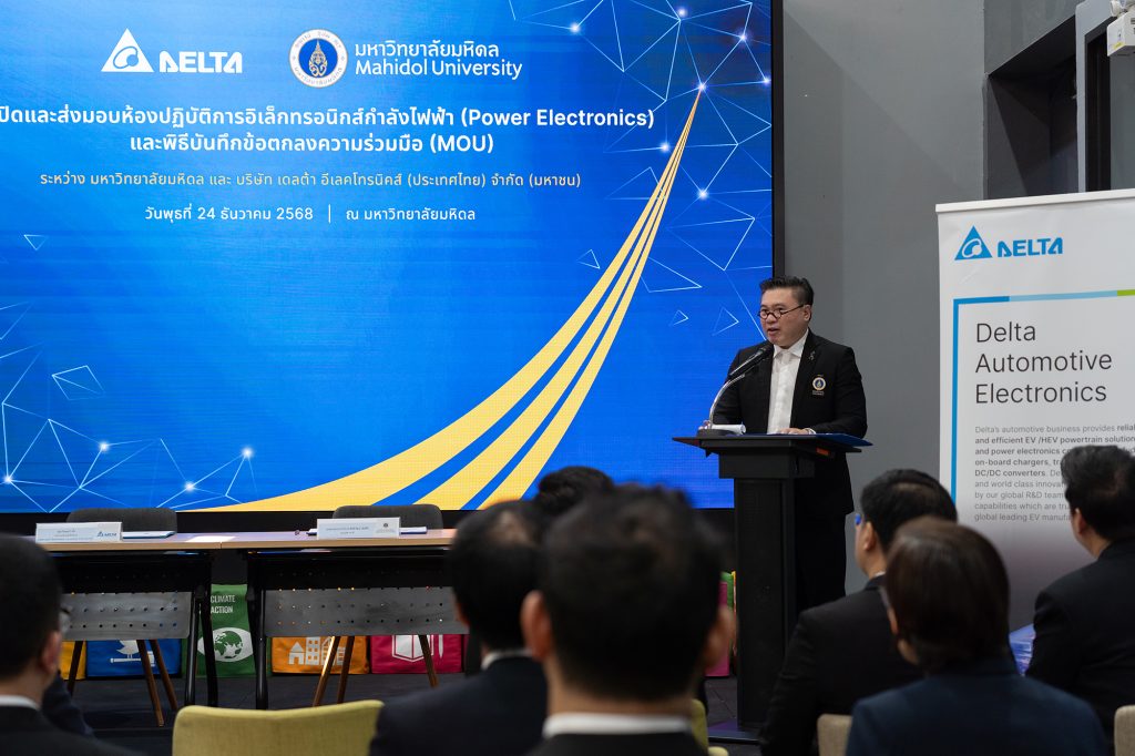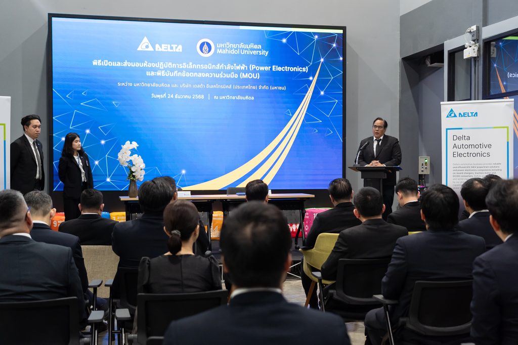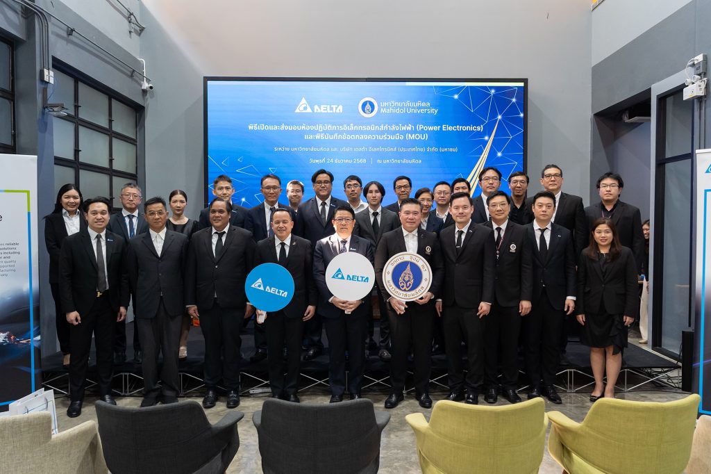 On 24 December 2025, Mahidol University and Delta Electronics (Thailand) PCL signed a Memorandum of Understanding (MOU) to strengthen collaboration in research, innovation, and talent development. The MOU was signed by Assoc. Prof. Dr. Sittiwat Lerssirisakul, Vice President of Mahidol University, and Mr. Victor Cheng, Chief Executive Officer of Delta Electronics (Thailand) PCL, The event was honored by the presence of Dr. Punpermsak Aruni, Acting Deputy Permanent Secretary Ministry of Higher Education, Science, Research and Innovation (MHESI), Thailand , and Mr. Suthiket Thatpitakkul, Deputy Secretary General, Thailand Board of Investment (BOI), who joined the ceremony to extend their congratulations at MaSHARES Co-Working Space, Mahidol University, Salaya.