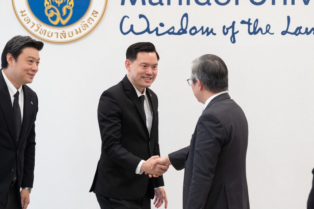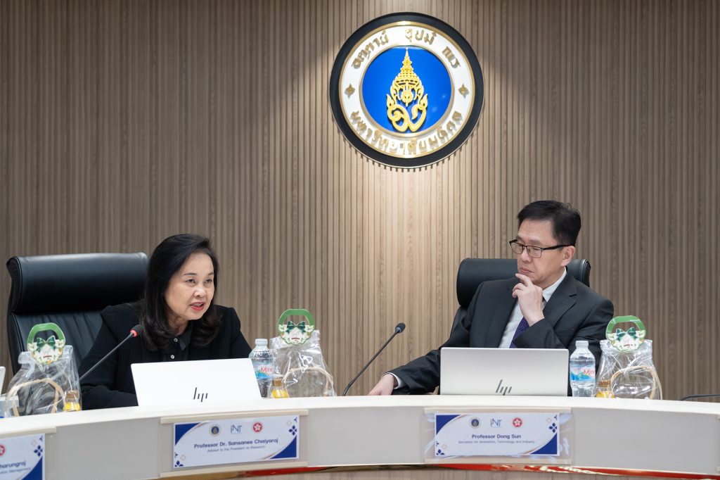 The visit was led by Prof. Dong Sun, Secretary for Innovation, Technology and Industry of the Hong Kong Special Administrative Region Government, together with his delegation. The delegation was officially welcomed by Prof. Sansanee Chaiyaroj, Advisor to the President for Research, Mahidol University. They were joined by Assoc. Prof. Dr.Viriya Taecharungroj, Director of the Institute for Technology and Innovation Management (INT), Ms. Onwalun Lohitharn Deputy Director, and Assoc. Prof. Dr.Krissada Asavaskulkiet, Deputy Director for Academic Service and Industry Partnership, who also took part in the welcoming session.