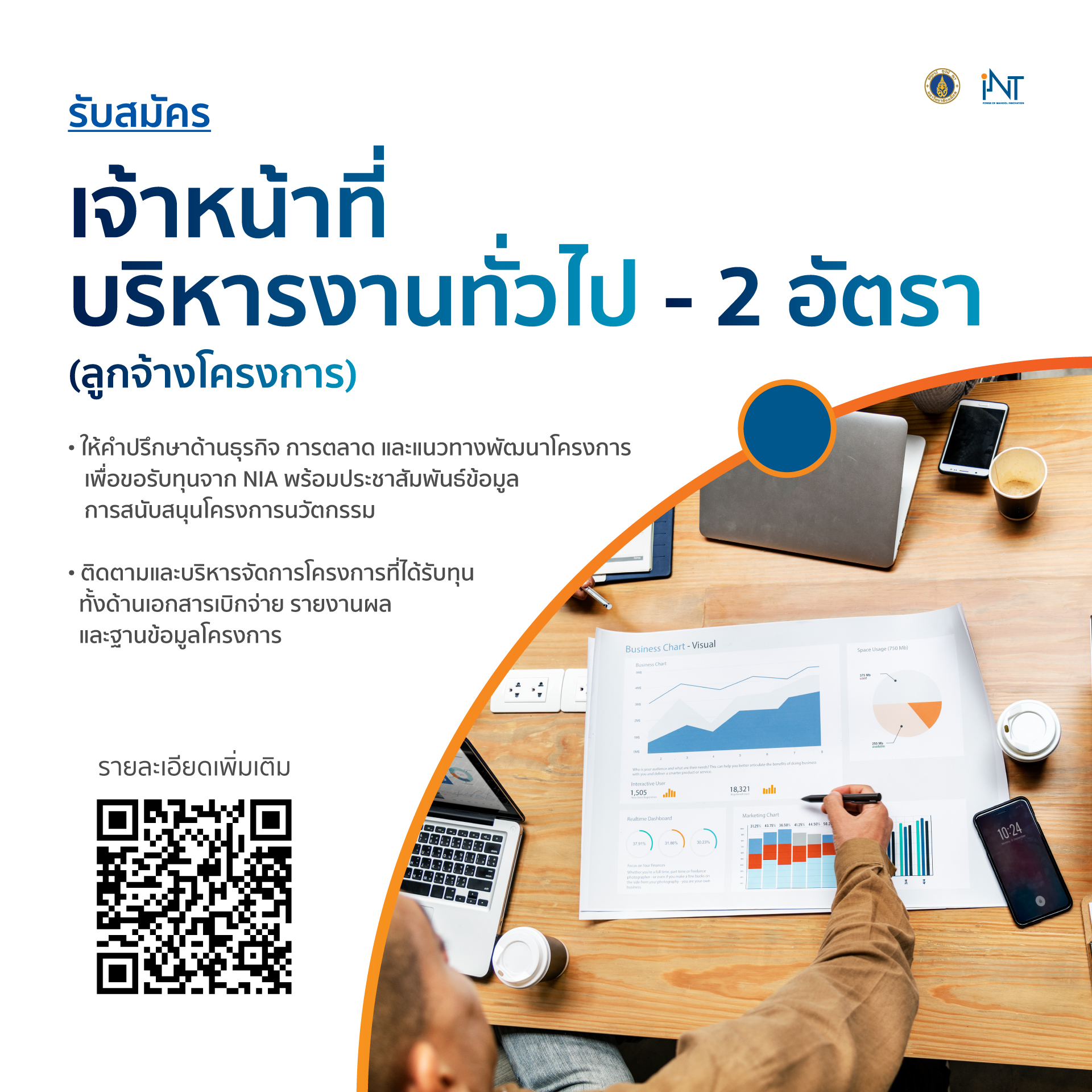 ตำแหน่ง Project Coordinator จำนวน 1 ตำแหน่ง